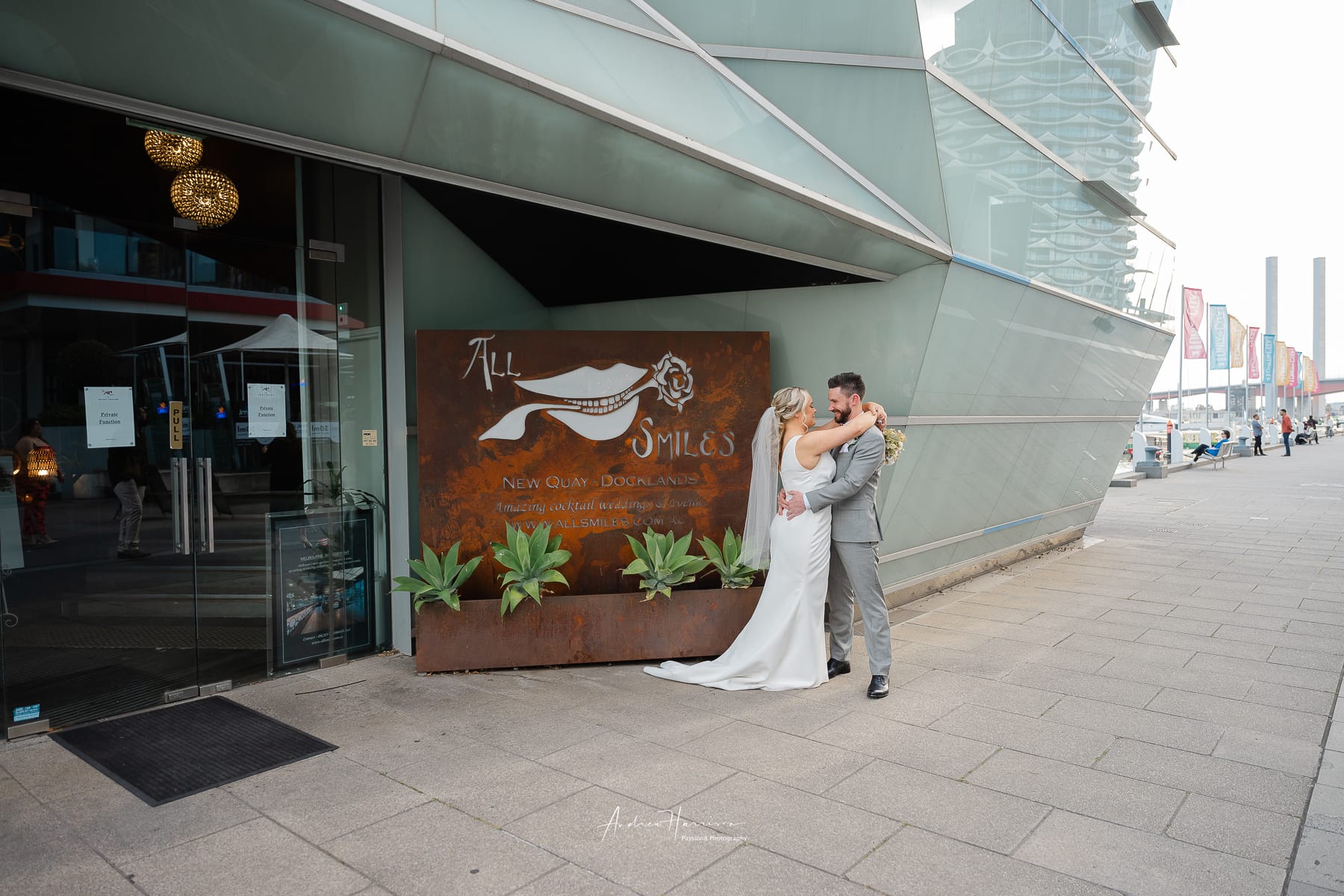 We chose our wedding venue, All Smiles Docklands, as we love the city vibes and the calming waters, so this venue was the perfect mix for weddings, with amazing view that literally made us say wow when walked in. All Smiles Docklands is where the wedding photography took place.